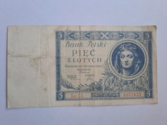 Banknot 5 zł 1930 r seria CS